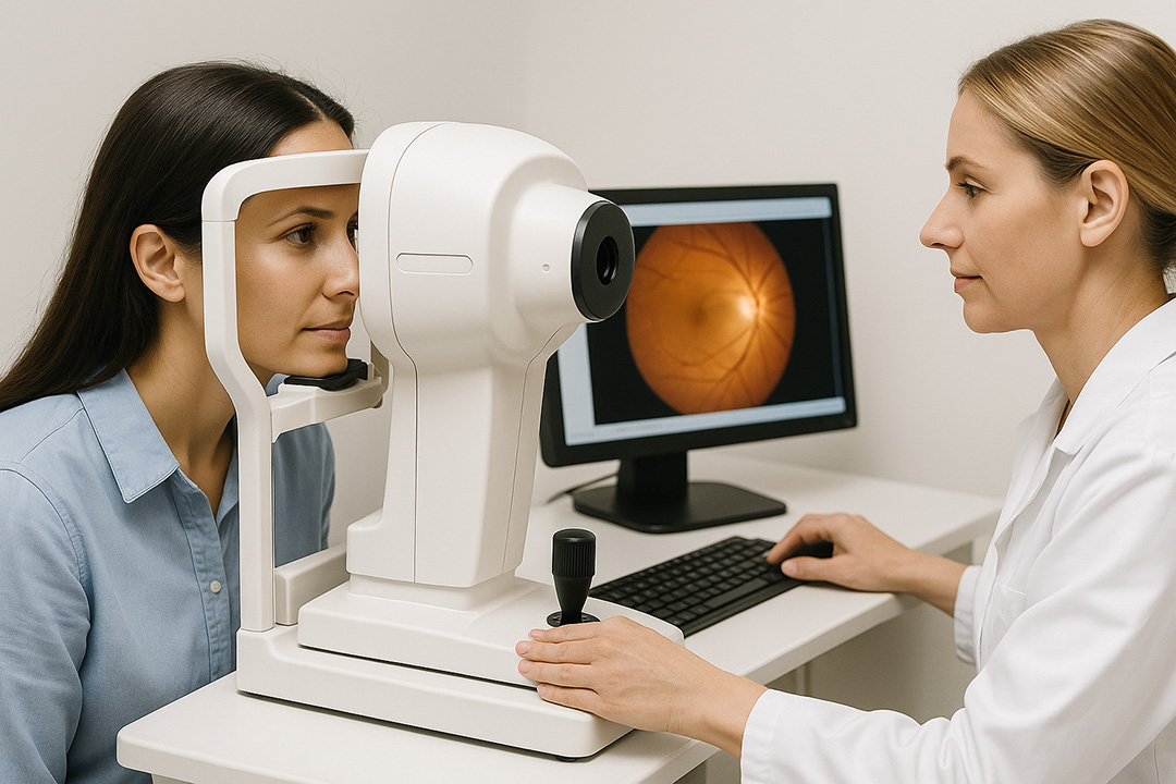 A retinografia é um exame de imagem que fotografa o fundo do olho, permitindo a avaliação detalhada da retina, da mácula e do nervo óptico. Trata-se de um exame fundamental no diagnóstico e acompanhamento de doenças como retinopatia diabética, degeneração macular relacionada à idade (DMRI), glaucoma e oclusões vasculares.